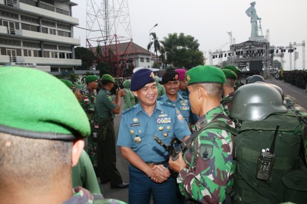 PB|Surabaya – Kepala Staf Koarmatim (Kasarmatim) Laksamana Pertama TNI I.N.G. Sudihartawan, S.Pi.,M.M., menghadiri upacara penyambutan Satgas Batalyon Infanteri Mekanis 512/Quratara Yudha usai Purna Tugas Operasi Pengamanan Perbatasan RI – PNG Tahun 2017, yang dipimpin oleh Komandan Garnisun Tetap III/Surabaya Mayor Jenderal TNI Arief Rahman, berlangsung di Dermaga Madura Koarmatim, Surabaya. Senin (19/03/2018).