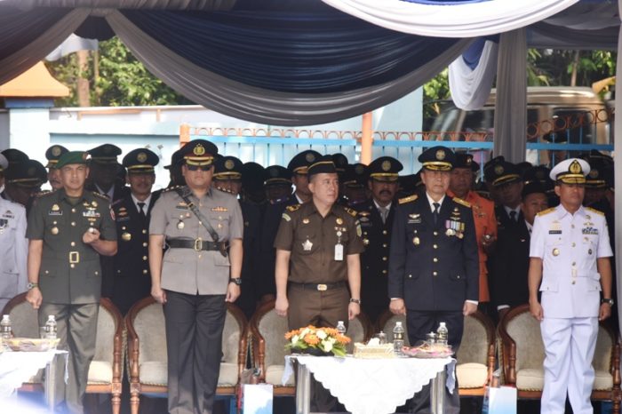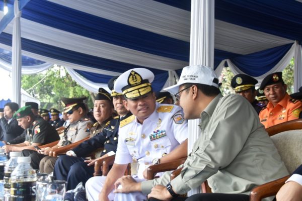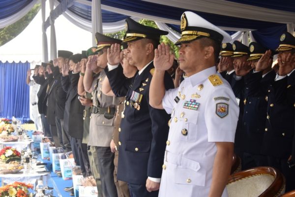 PB|Surabaya – Kepala Staf Armada RI Kawasan Timur (Kasarmatim) Laksamana Pertama Laksma TNI Roberth Wolter Tappangan, S.H., mewakili Pangarmatim Laksamana Muda (Laksda) TNI Darwanto, S.H., M.A.P., menghadiri upacara bendera dalam rangka peringatan Hari Perhubungan Nasional (Harbudnas) tahun 2017 dengan Inspektur Upacara (Irup) Wakil Gubernur Jawa Timur Drs. H. Saifullah Yusuf bertempat di Lapangan Pokeskar Tanjung Perak, Surabaya, Senin (18/09/17).