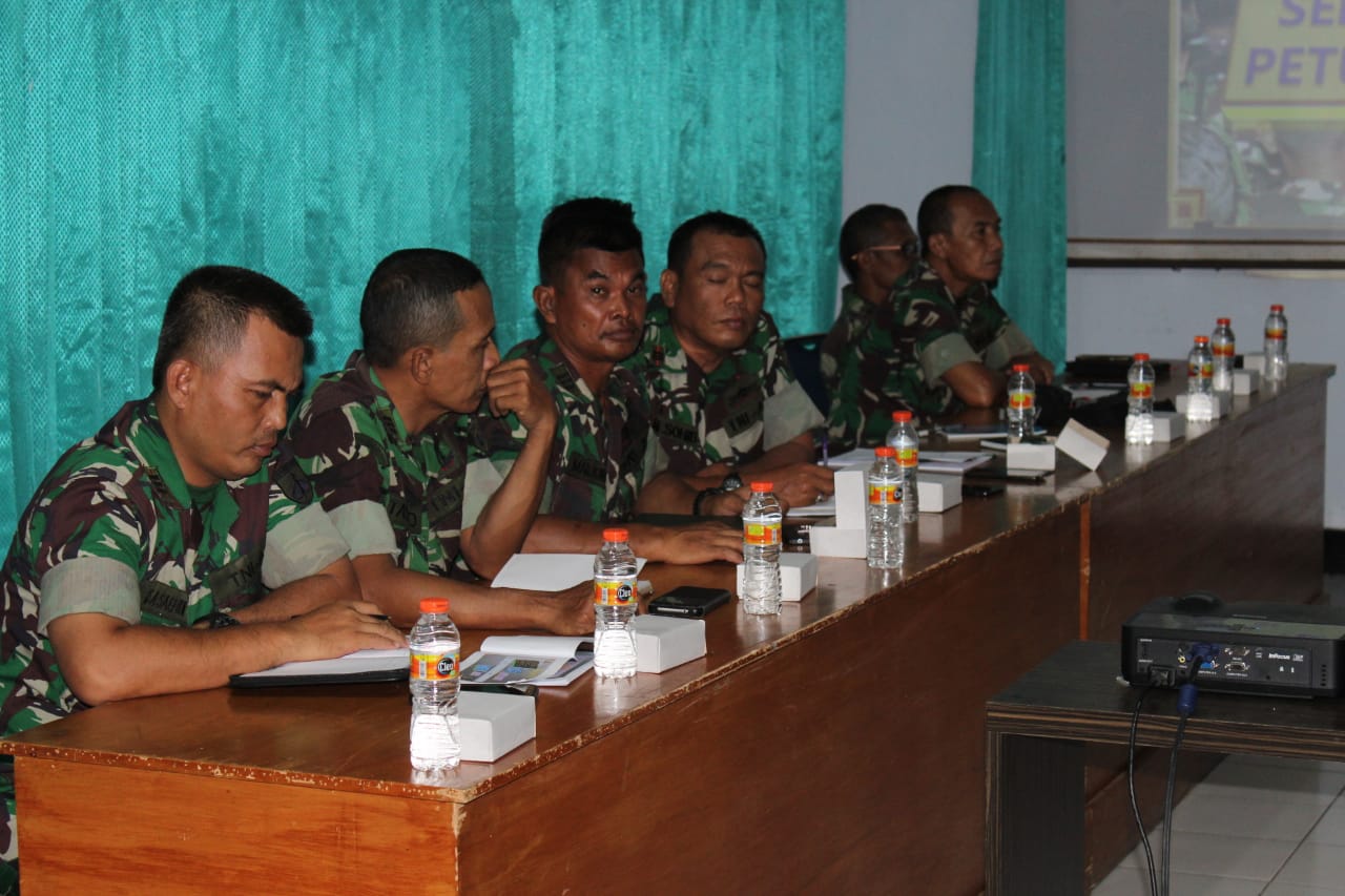 Cilacap – Kepala Staf Kodim 0703/Cilacap Mayor Inf. Ahmad Rofik Alfian menerima paparan Rencana Garis Besar (RGB) Latihan Teknis Teritorial (Latnister) Kodim 0703/Cilacap Triwulan I tahun 2019 dari Komandan Latihan Teknis Teritorial Kapten Inf. Ngadisan di ruang Data Makodim Jl. Jend. Sudirman No. D-1 Cilacap, Jum’at (08/03).
