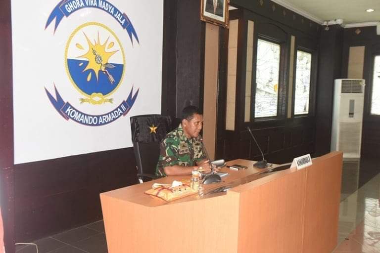Di hadapan Kaskoarmada II Komandan KRI Surabaya (SBY)- 591 Letkol Laut (P) Heru Syamsul Hidayat, S. Si., memaparkan tentang kesiapan dan pergerakan KRI SBY- 591 yang membawa pasukan serta material.