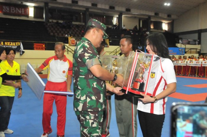 Usai acara penutupan, Kasum TNI Letjen TNI Joni Supriyanto menyerahkan Piala Bergilir Panglima TNI dan Piala Tetap kepada kontingen Mabes AD selaku Juara Umum Kategori TNI-Polri, serta menyerahkan Piala Tetap kepada Kontingen DKI selaku Juara Umum peserta dari Pengprov dan Perguruan di bawah FORKI. (Puspen TNI|red|noven)