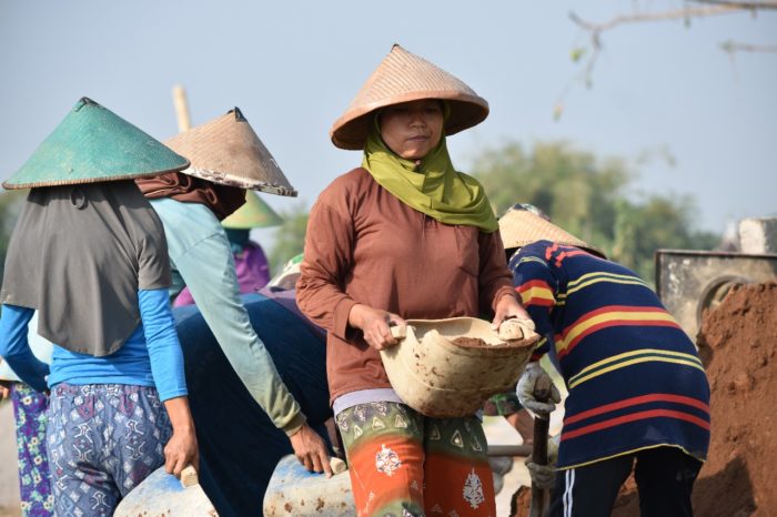 PB|Demak – Tidak ketinggalan pula Kaum Hawa desa Kebonsari juga terjun di lokasi TMMD Sengkuyung II TA.2018 Kodim 0716/Demak.