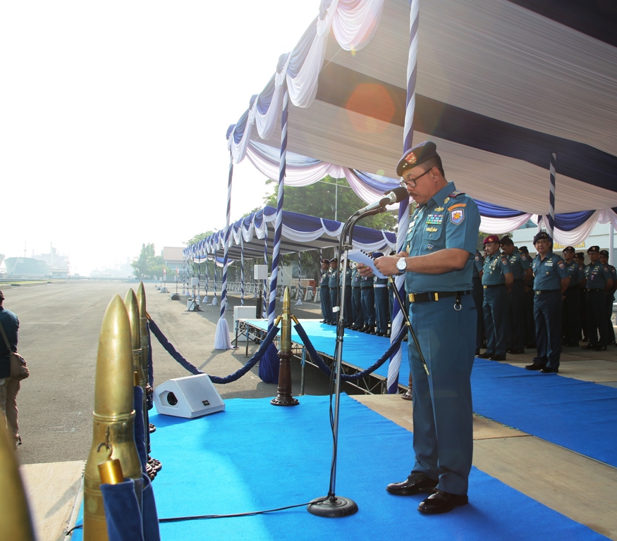 Surabaya – Dua hari menjelang serah terima jabatan Panglima Komando Armada (Pangkoarmada) II, Laksamana Muda (Laksda) TNI Didik Setiyono, S.E., M.M., memimpin Apel Khusus bersama Prajurit dan Pegawai Negeri Sipil (PNS) Koarmada II, bertempat di Dermaga Madura Koarmada II, Ujung, Surabaya, Senin (15/10/2018).