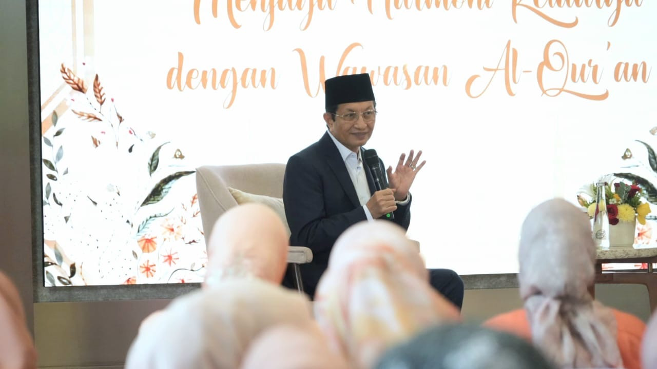 Jakarta – Menteri Agama Nasaruddin Umar menjelaskan pandangan Al-Qur’an tentang perempuan. Ia menegaskan bahwa di dalam Al-Qur’an, kedudukan perempuan setara dengan laki-laki. Bahkan, secara spiritual, sifat-sifat perempuan dianggap lebih dekat dengan sifat ketuhanan.