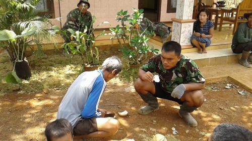 Batang – Siapa sangka kelapa muda bisa jadi sarana komunikasi anggota Kodim 0736 Batang bersama warga Desa Durenombo Kecamatan Subah.  Pasalnya, di sela-sela pengerjaan jalan dalam program TMMD Reguler ke-103, beberapa anggota TNI memanfaatkan waktu bersama warga desa dengan mengambil air kelapa muda.  Sembari melepas lelah, baik warga desa dan TNI, memanfaatkan air kelapa muda untuk menghilangkan dahaga.  Obrolan asyik pun terjadi antara warga dan anggota Kodim 0736 Batang, saat menikmati segarnya air kelapa muda yang baru dibuka dari tempurungnya, Jumat (19/10/2018).