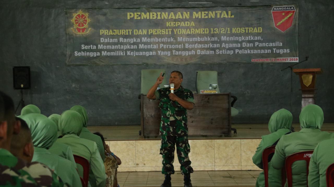 Sukabumi – Wakil Komandan Batalyon Armed (Wadan Yonarmed) 13 Kostrad besrta seluruh Prajurit dan Persit Yonarmed 13 Kostrad menerima Ceramah Penyuluhan Pembinaan Mental (Bintal) dari Makostrad bertempat di Markas Yonarmed 13 Kostrad Cikembar, Sukabumi, Jawa Barat. Kamis (21/03).