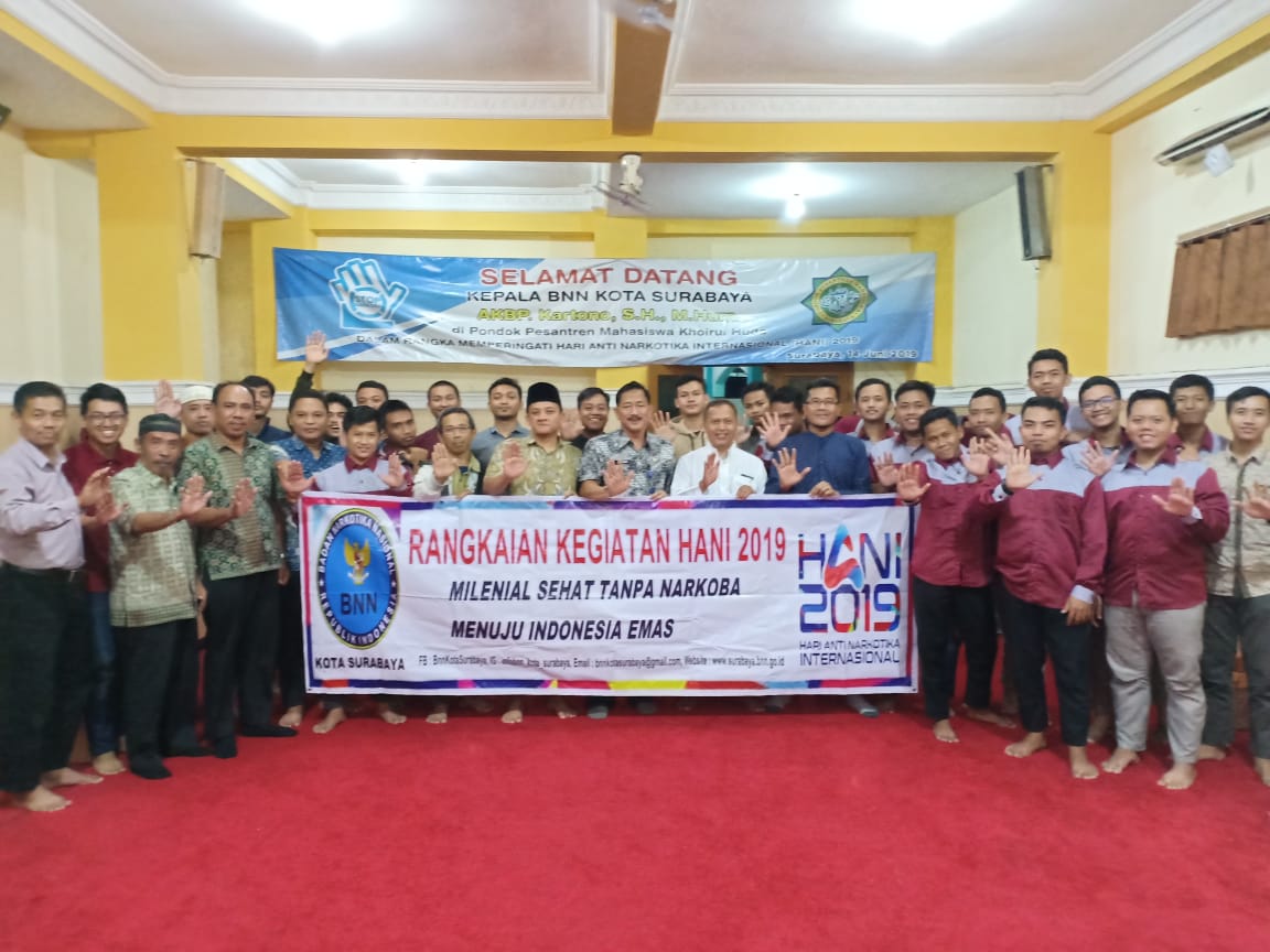 Kegiatan silahturahmi Kepala BNN Kota Surabaya didampingi seksi rehabilitasi dalam rangka audiensi dan perkenalan kepada Ketua dan pengurus LDII Surabaya beserta seluruh santri dan santriwati pondok pesantren Khoiri Huda binaan LDII. Ia juga menyampaikan visi dan misi ke depan tentang pentingnya kesadaran dan upaya pencegahann dan pemberantasan Narkoba dapat berjalan maksimal, salah satunya dengan dukungan para santri dan santriwati yang nantinya dapat bermanfaat bagi masyarakat luas dalam membina pendidikan agama Islam kepada anak-anak bangsa Indonesia.