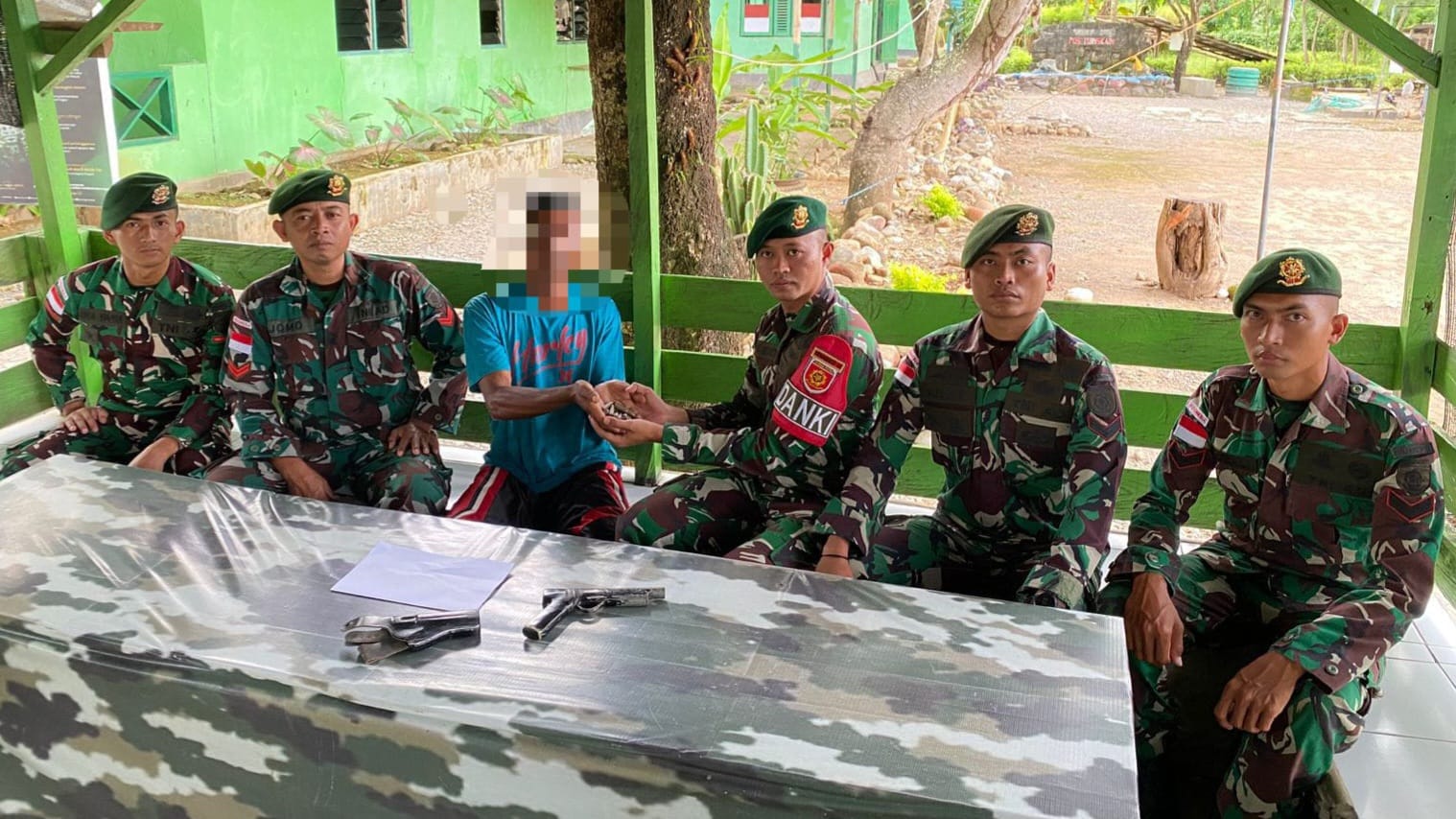 Belu – Satgas Pamtas RI–RDTL Sektor Timur Yonarmed 12 Kostrad kembali menunjukkan peran aktifnya dalam menjaga stabilitas keamanan wilayah perbatasan. Hal ini terlihat dari penyerahan 1 (satu) pucuk senjata api jenis pistol rakitan beserta 15 butir munisi tajam kaliber 6,5 mm dan 1 butir munisi tajam kaliber 5,56 mm oleh warga Dusun Turiscain, Desa Maumutin, Kecamatan Raihat, Kabupaten Belu, kepada personel Pos Turiscain pada Minggu (05/04/2026).
