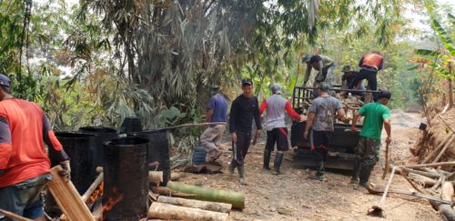 “Aspal musuhnya air, jika sampai turun hujan dipastikan kualitas jalan yang dihasilkan nanti tidak akan maksimal.” ungkap Dansatgas TMMD/Dandim Batang, Letkol Kav. Henry R.J Napitupulu saat ikut bersama-sama warga membakar ter dengan kayu dan bambu.(kodim batang|red|noven)