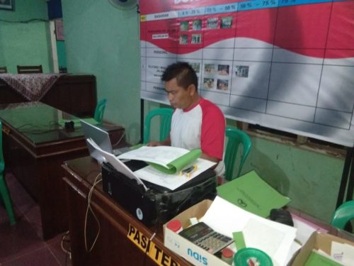 Batang – Ternyata tidak hanya sasaran fisik saja yang di kebut dalam TMMD reg 103 Kodim 0736 Batang, adalah Pelda Anton, anggota Staf Teritorial pun rela bekerja lembur sampai malam guna menyelesaikan administrasi di Poskotis TMMD reg,Kamis (25/10/18)