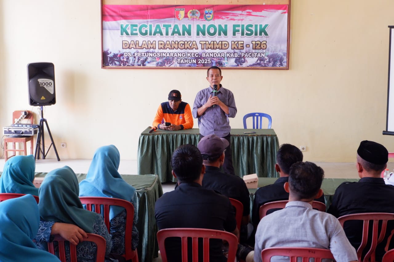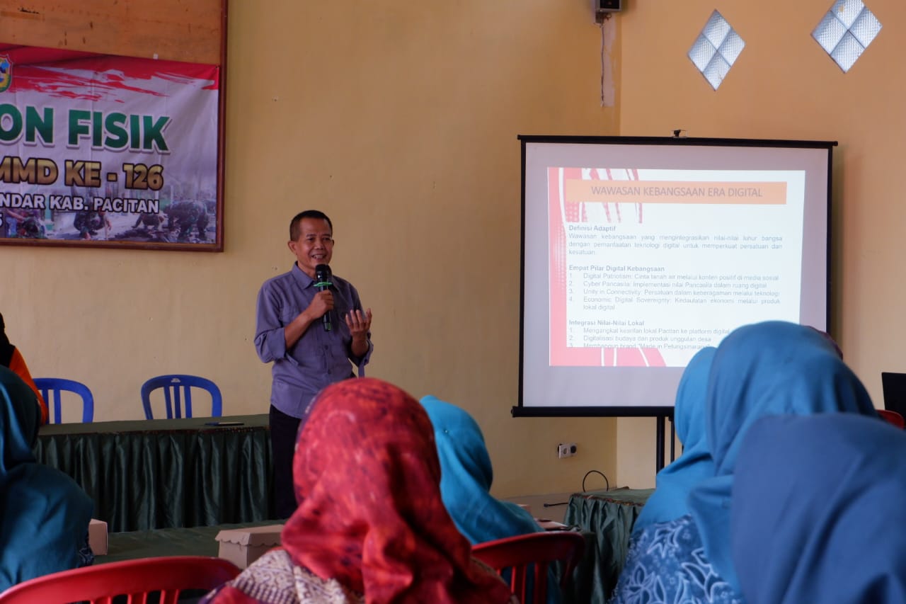 Pacitan, – Tentara Manunggal Membangun Desa (TMMD) ke-126 Kodim 0801/Pacitan melaksanakan kegiatan non-fisik dengan penyuluhan Wawasan Kebangsaan untuk wujudkan masyarakat yang sadar akan nilai-nilai kebangsaan, Pancasila, dan persatuan dalam bingkai Negara Kesatuan Republik Indonesia dan juga wawasan kebangsaan di era digital.