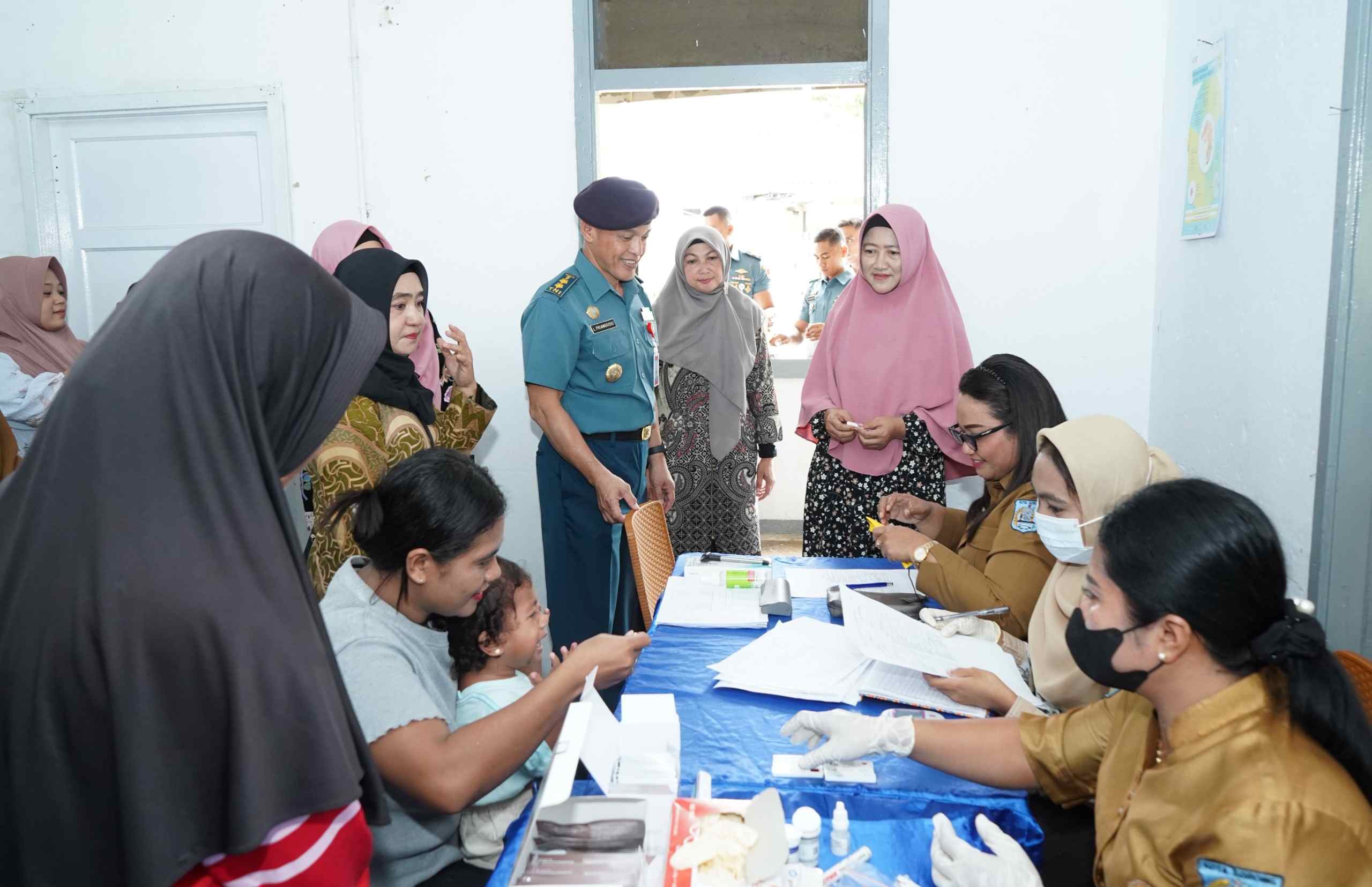 Diakhir kegiatan Ketua Daerah Kodaeral XIV Gabungan Jalasenastri Koarmada RI memberikan vitamin dan susu kepada anak balita dan Paud TK Hang Tuah Sorong dan menyerahkan bantuan susu kepada anak stunting melalui Kepala Puskesmas Remu Sorong.