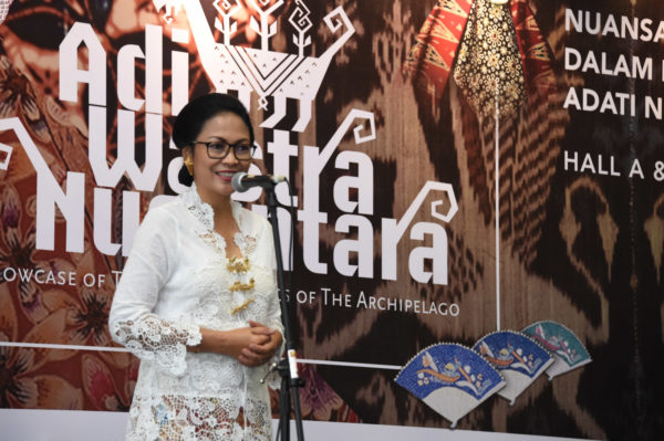 PB|Jakarta – Para pengunjung Adiwastra Nusantara tahun 2018 sangatlah banyak, hal ini menunjukkan mendapat respon positif dari masyarakat bahwa pameran yang dilaksanakan pada tahun ini lebih baik pelaksanaanya dari tahun-tahun sebelumnya. Hal tersebut dikatakan Ketua Harian Ikatan Kesejahteraan Keluarga TNI Pragati Wira Anggini (IKKT PWA) selaku Ketua Penyelenggara Adiwastra Nusantara, Ibu Wida Didit Herdiawan pada acara penutupan Adiwastra Nusantara ke-11 tahun 2018, dengan tema “Nuansa Kekinian Dalam Balutan Wastra Adati Nusantara” yang diselenggarakan di Hall B Jakarta Convention Center (JCC), Jl. Gatot Subroto, Senayan, Jakarta Pusat, Minggu (15/4/2018).