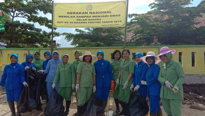 Jepara – Ketua Cabang 4 Korcab V Daerah Jalasenastri Armada II yang juga Wakil Ketua Dharma Pertiwi Daerah D Unsur Jalasenstri, Ny. Heni Heri Triwibowo menghadiri Pencanangan Gerakan Peduli Sampah Nasional yang diselenggarakan di Pantai Pungkruk Desa Mororejo, Kecamatan Mlonggo, Kabupaten Jepara, Kamis (21/3).