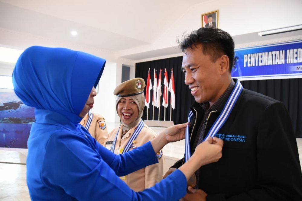 Pengalungan medali ini karena keberhasilan para anggota Korcab VI dan yayasan hangtuah melaksanakan penyelaman dan berhasil membentangkan Banner HUT Jalasenastri beberapa waktu lalu di pulau samalona.