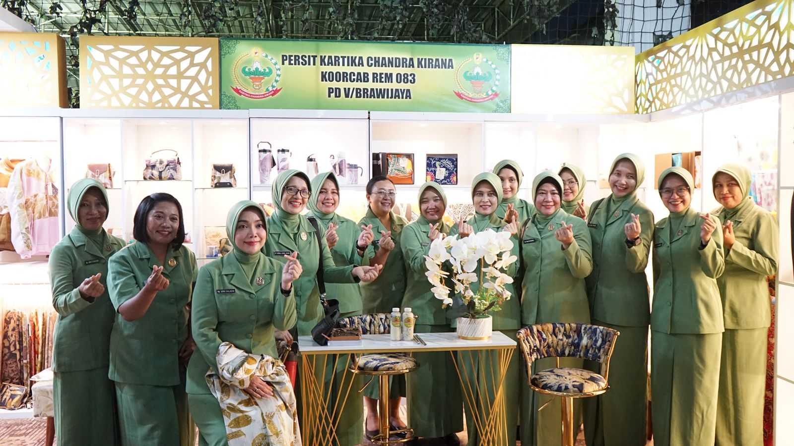 Surabaya, Selasa (21 Oktober 2025) – Ketua Persit Kartika Chandra Kirana Daerah V/Brawijaya, Ny. Vira Rudy Saladin, mengunjungi stand UMKM Persit Kartika Chandra Kirana Koorcab Rem 083 PD V/Brawijaya dalam kegiatan pameran produk unggulan Persit yang digelar di Surabaya.