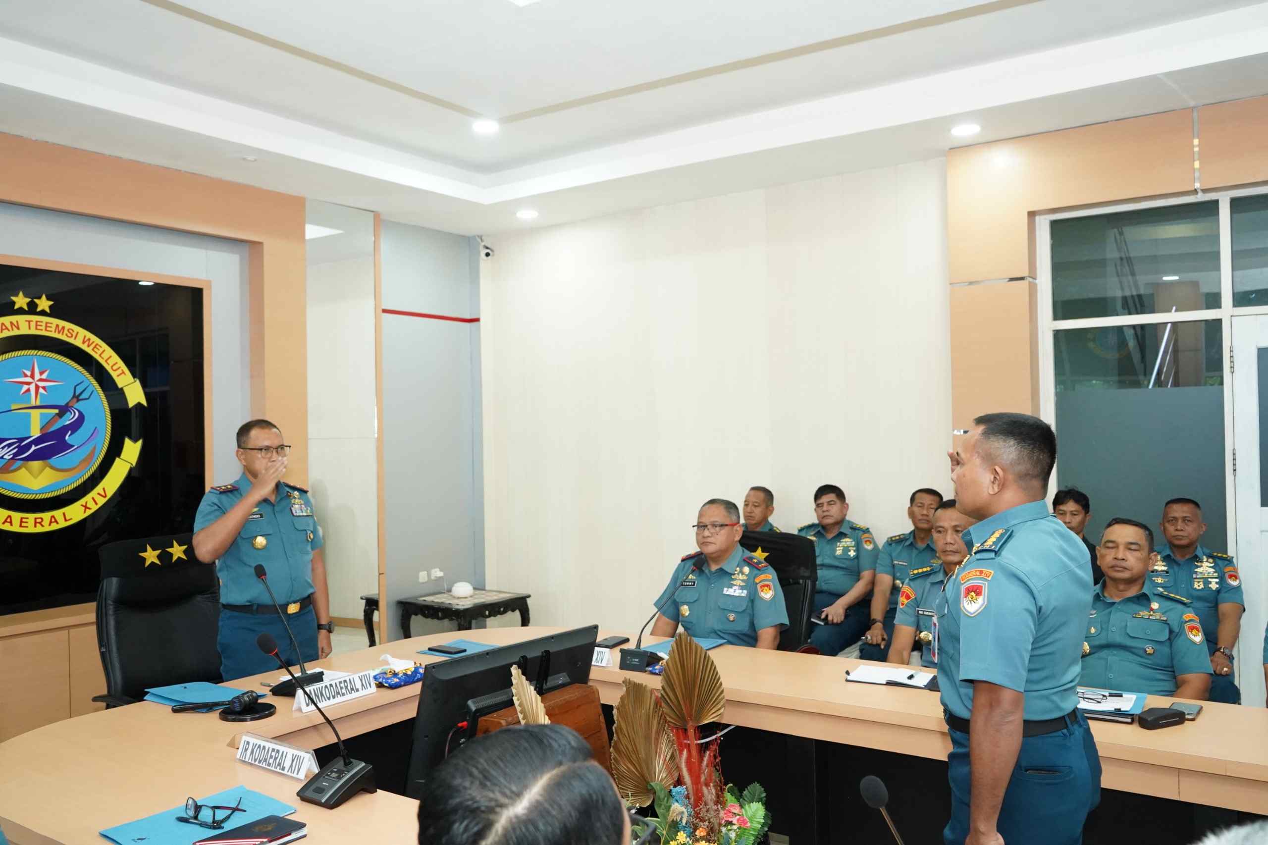 Sorong – Komandan Komando Daerah TNI Angkatan Laut (Dankodaeral) XIV, Laksamana Muda TNI Djatmoko, S.T., M.M., CHRMP., pimpin langsung pelaksanaan Rapat Staf dan Komando (Rasko) Kodaeral XIV Tahun 2026 yang digelar di Ruang Rapat Mako Kodaeral XIV, Jalan Bubara No. 01, Kelurahan Klaligi, Distrik Sorong Manoi, Kota Sorong, Papua Barat Daya, Kamis (19/02/2026).