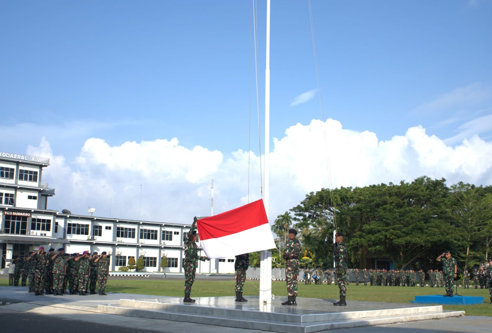 Sorong – Bertempat di Lapangan Upacara Komando Daerah TNI Angkatan Laut XIV (Kodaeral XIV) Sorong, Wakil Komandan Kodaeral XIV Sorong Laksamana Pertama TNI Tommy Herlambang, S.E., memimpin Upacara Bendera 17-an yang dilaksanakan di Lapangan Apel Mako Kodaeral XIV yang diikuti oleh seluruh Pejabat Utama, Kasatker, Komandan Satuan, dan Prajurit serta PNS Kodaeral XIV. Senin (20/04/2026).