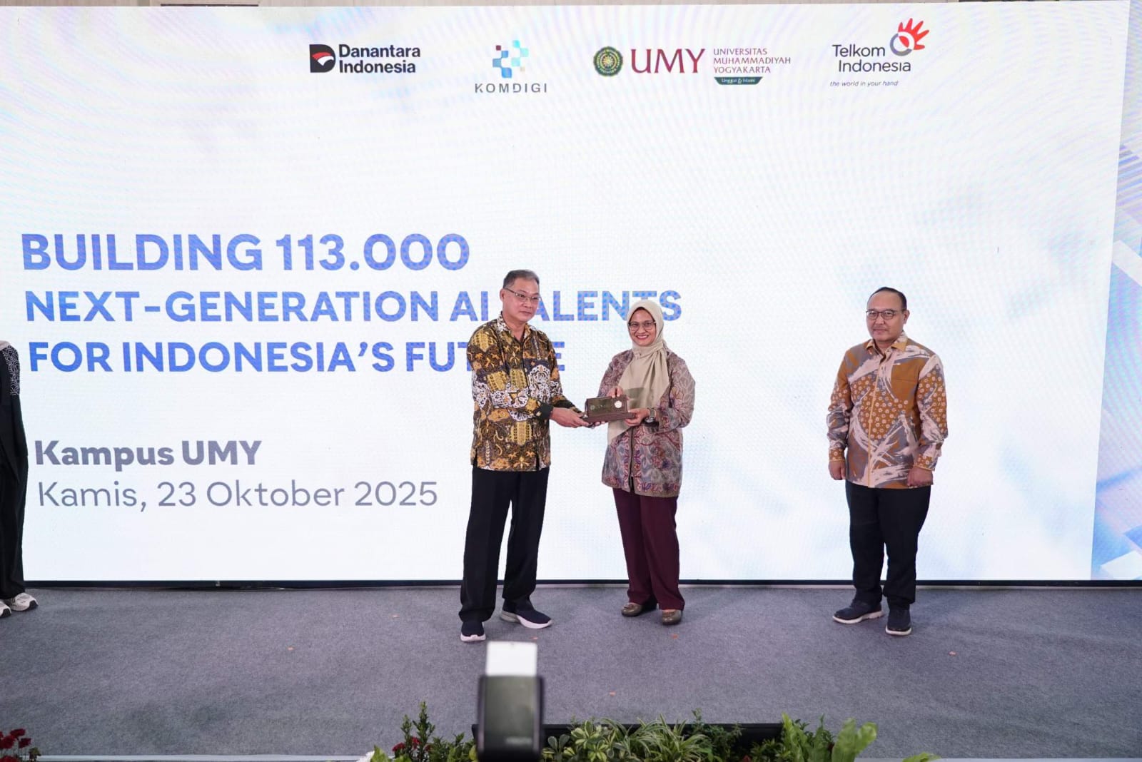 Acara ini dihadiri oleh Direktur Utama Telkom Dian Siswarini, Rektor UMY Prof. Dr. Achmad Nurmandi, M.Sc dan Kepala Badan Pengembangan Sumber Daya Manusia Kementerian Komdigi Bonifasius Wahyu Pudjianto.