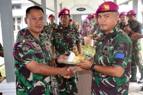 Selesai melaksanakan apel khusus dilanjutkan dengan pemberian ucapan selamat serta acara ramah tamah dan pemotongan tumpeng oleh Danyontaib-1 Mar yang diberikan kepada Praka Mar/Iam Dino Putra sebagai perwakilan anggota yang selesai melaksanakan penugasan.(Dispenkormar|red)