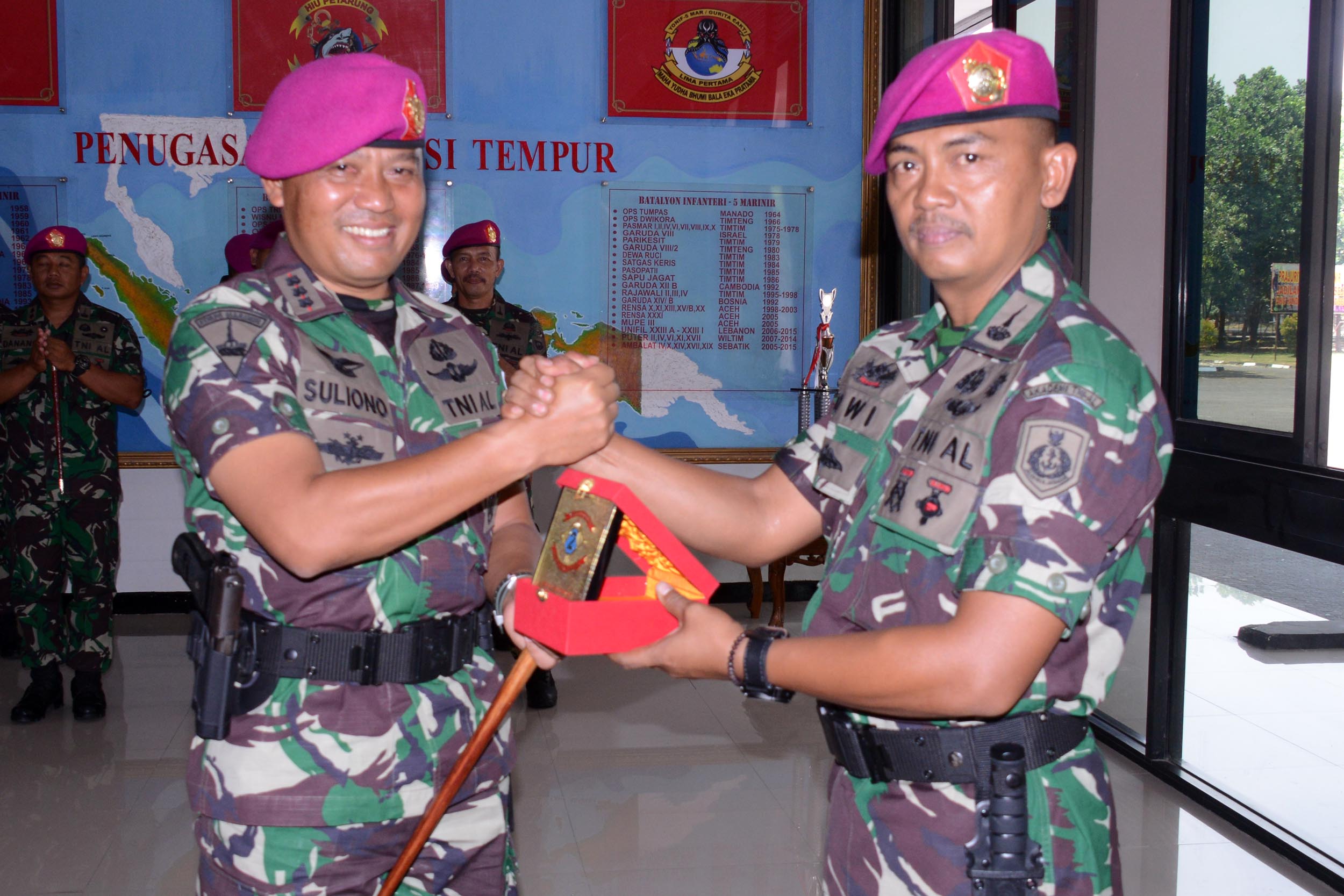 Sidoarjo – Komandan Brigade Infanteri 2 Marinir (Brigif 2 Mar) Kolonel Marinir Suliono menerima penyerahan Jabatan Perwira Staf Personel (Paspers) di Lobby Brigif 2 Marinir Gedangan, Sidoarjo. Kamis (25/10/2018).