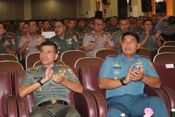 PB|Yogyakarta – Komandan Pangkalan TNI Angkatan Laut (Danlanal Yogyakarta Kolonel Laut (P) Arya Delano, S.E., M.Pd., beserta 20 orang prajuritnya ikut hadir dalam pengarahan Panglima TNI dan Kapolri kepada prajurit TNI dan Polri se-Jawa Tengah dan D.I. Yogyakarta tahun 2018, yang diselenggarakan di Auditorium Cenderawasih, Akademi Kepolisian (Akpol), Jl. Mayjen S. Parman Semarang Senin lalu. Acara tersebut dihadiri para pimpinan dan prajurit TNI Polri di wilayah Jateng dan D.I. Yogyakarta kurang lebih 2000 personel.