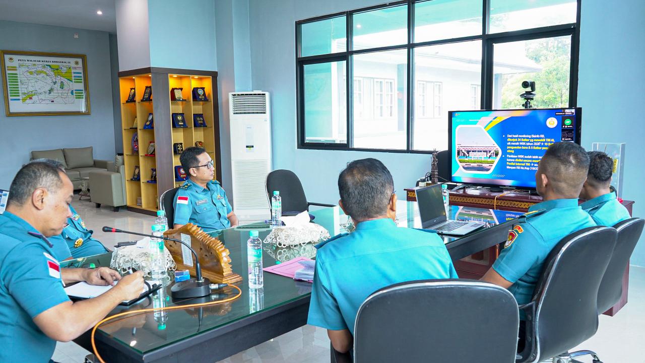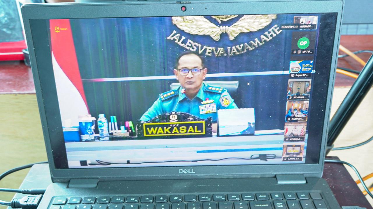 Tampak hadir dalam Vicon yang digelar di di Ruang Kerja Komandan Kodaeral IX, Halong, Kota Ambon, Maluku ini antara lain Wadan Kodaeral lX, Laksma TNl Dr. Muhammad Risahdi, Sahli D Jemen, Kolonel Laut (KH) Slamet Basuki dan tim.