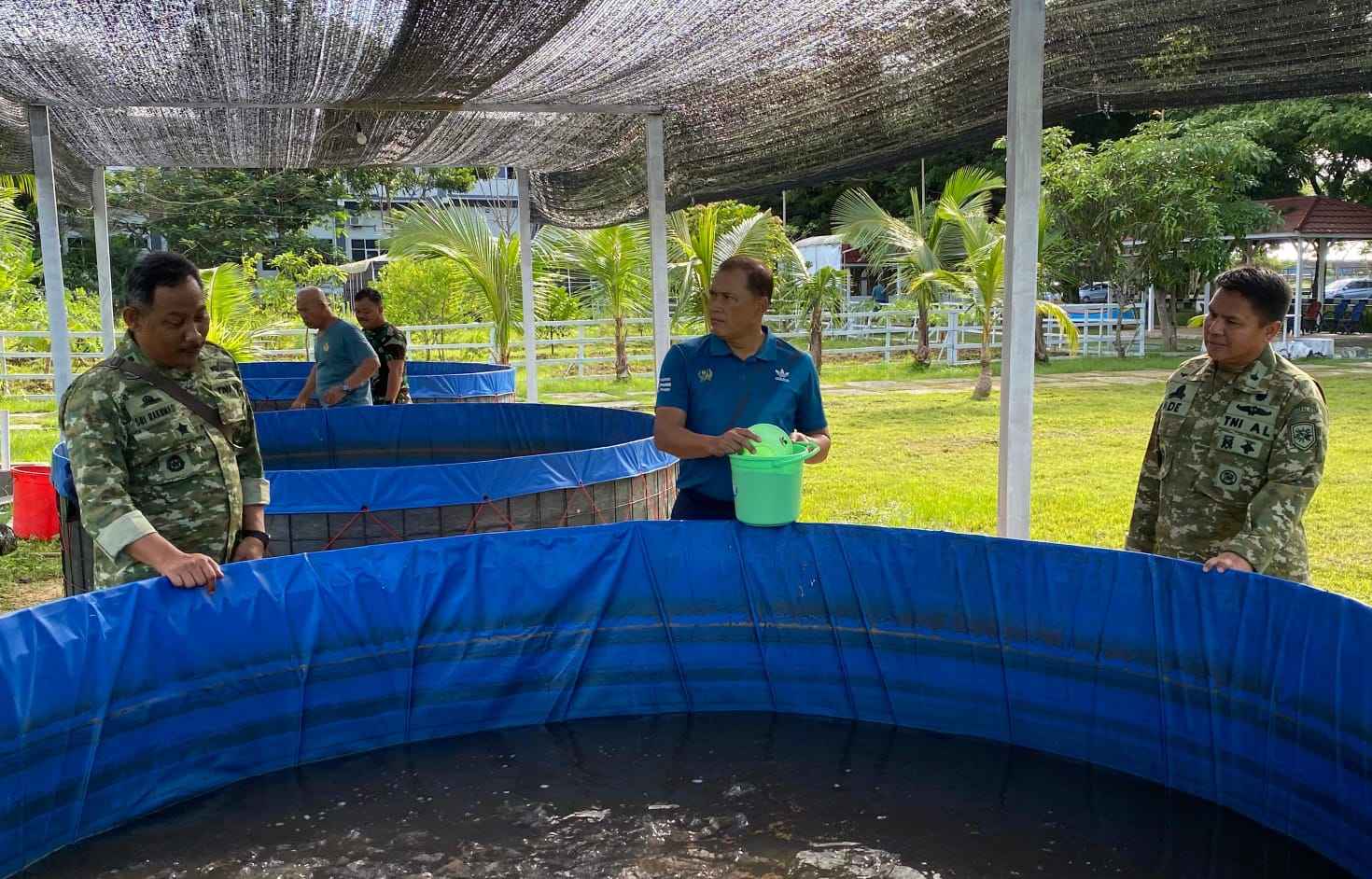 Sorong – Komandan Komando Daerah TNI Angkatan Laut XIV (Kodaeral XIV) Sorong, Laksamana Muda TNI Djatmoko, S.T., M.M., CHRMP., yang didampingi Aster Dankodaeral XIV Kolonel Laut (P) Sri Rakhmadi,M.Tr.Hanla dan Kadister Kodaeral XIV Kolonel Marinir Ade Darmansyah, M.Tr. Hanla., melaksanakan pengecekan ketahanan pangan di Kebun Ketahanan Pangan Kodaeral XIV Sorong, pengecekan ini mencakup berbagai aspek ketahanan pangan, di antaranya kebun, dan kolam ikan nila dan kolam lele yang dikelola oleh Dinas Teritorial Kodaeral XIV Sorong. Kamis (16/04/2026).