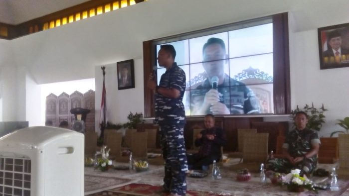 Banyuwangi – Komandan Pangkalan TNI Angkatan Laut (Danlanal) Banyuwangi , Lantamal V, Koarmada II, Letkol Laut (P) Yulius Azz Zaenal, S.H., M.Tr.Hanla memberikan wawasan sinergitas tiga pilar, adapun tema yang diangkat dalam kegiatan ini adalah Kondusifitas Wilayah Menjadi Tangung Jawab Bersama Demi Terwujudnya Pemilu Luber, Jurdil dan Damai” di pendopo Kabupaten Banyuwangi , Jumat (12/4).