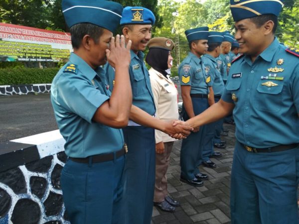 PB|Bangkalan – Komandan Pangkalan TNI Angkatan Laut (Danlanal) Batuporon, Lantamal V Letkol Laut (P) Teguh Wibowo M. Tr. Hanla melepas empat personelnya yang mengakhiri masa dinas atau purna tugas di TNI/TNI AL yang digelar di Lapangan Apel Mako Lanal Batuporon, Kamus (5/4). Selain melepas, Danlanal juga meresmikan 16 personelnya yang mendapatkan kebaikan pangkat kala waktu 1 april 2018 ini. Antara lain 11 personel bintara, tiga personel tamtama, dan 2 personel PNS.