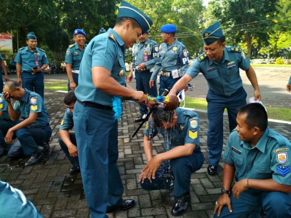 Usai melaksanakan upacara, dilanjutkan dengan acara tradisi, yaitu penyiraman air dengan acara tradisi “Mandi kembang” yang dilakukan Danlanal dilanjutkan dengan para pejabat lainnya dan terakhir penyiraman menggunakan mobil pemadam kebakaran yang disiramkan kepada personel serta dilanjutkan dengan ucapan selamat Danlanal kepada para personel yang naik pangkat dan golongan.(Dispenlantmal V|red)