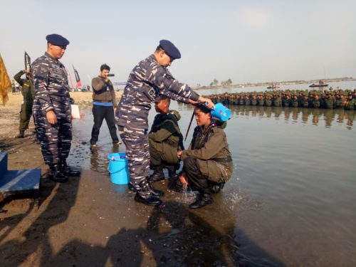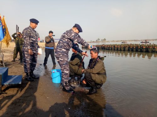 Dalam rangka penutupan seluruh rangkaian kegiatan pelatihan kepemimpinan dasar, mental dan fisik yang diikuti oleh 730 orang Catar dan Catir Sekolah Maritim Stimart Amni Semarang tersebut dilaksanakan upacara tradisi mandi laut. Komandan Lanal Semarang bertindak selaku Inspektur Upacara dalam kegiatan tersebut .