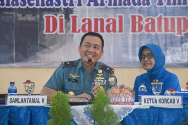 PB|Bangkalan – Komandan Pangkalan Utama TNI AL (Danlantamal) V Laksamana Pertama TNI Edwin, S.H. didampingi Ketua Korcab V DJAT Ny. Wenny Edwin melaksanakan kunjungan kerja ke Pangkalan TNI Angkatan Laut (Lanal) Batuporon Madura, Rabu (11/4).
