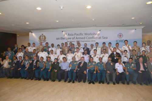Dalam workshop yang melibatkan sejumlah perwira menengah Angkatan Laut dari negara-negara di Asia Pasifik tersebut tampak hadir pula Wakil Kepala Staf Angkatan Laut (Wakasal) Laksdya TNI Arie Sembiring yang juga menjadi salah satu pejabat yang memberikan sambutan di awal acara.Pejabat lainnya yang turut hadir yakni Kepala Delegasi Regional ICRC (International Committee of the Red Cross) untuk Indonesia dan Timor Leste Christoph Sutter, Walikota Surabaya Ir. Tri Rismaharini, M.T , Staf dari Kementerian Kemaritiman. Pada kesempatan itu juga dihadiri para Atase Pertahanan (Athan) negara sahabat seperti dari USA, Athan Australia, Athan Rusia, Athan Jepang, Athan Singapura, Athan Malaysia, Athan Timor Leste, Athan Bangladesh, Athan Pakistan, Athan Vietnam, Athan Thailand, Athan Philipina, Athan Korea, Athan Myanmar, Athan Srilanka, Athan New Zealand, Athan Cambodia, Athan Fiji.