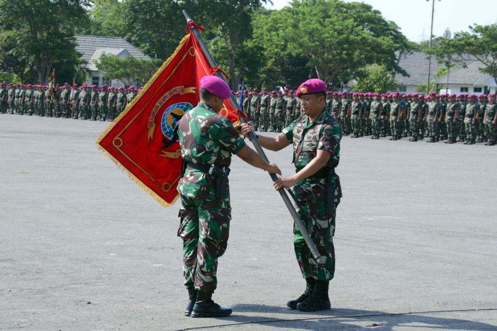 Sebelum memberikan reward, Komandan Pasmar 2 menerima bendera Kontingen Binsat Pasmar 2 dari Komandan Kontingen Binsat Pasmar 2 Kolonel Marinir Suliono yang sehari-hari menjabat sebagai Komandan Brigif 2 Marinir Gedangan, Sidoarjo.