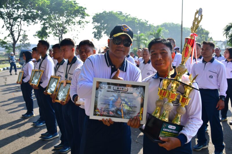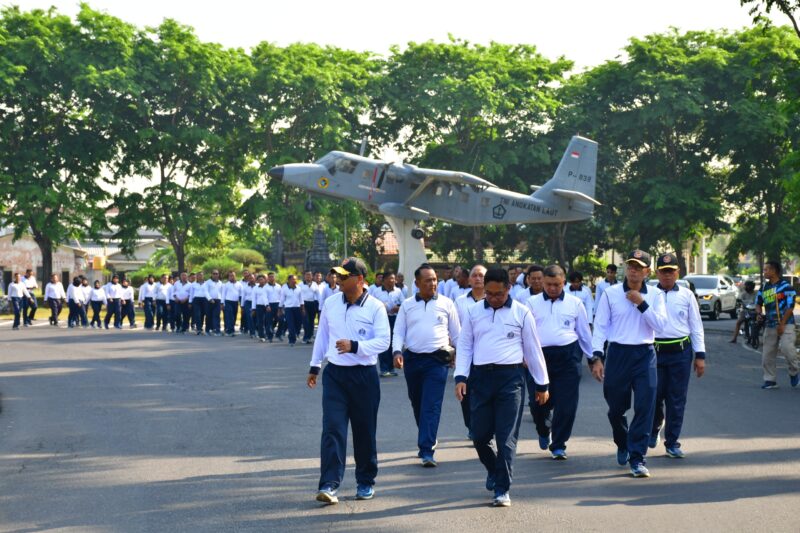 Sidoarjo – Komandan Pusat Penerbangan TNI Angkatan Laut (Danpuspenerbal), Laksda TNI Bayu Alisyahbana memberikan apresiasi prajuritnya yang berprestasi di cabang olahraga (Cabor) Pencak Silat dan Karate di tingkat Nasional dan Internasional pada Apel Olahraga Pagi di Bundaran Gannet Puspenerbal, Juanda, Selasa (23/9/2025).
