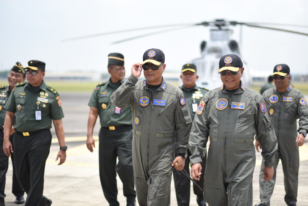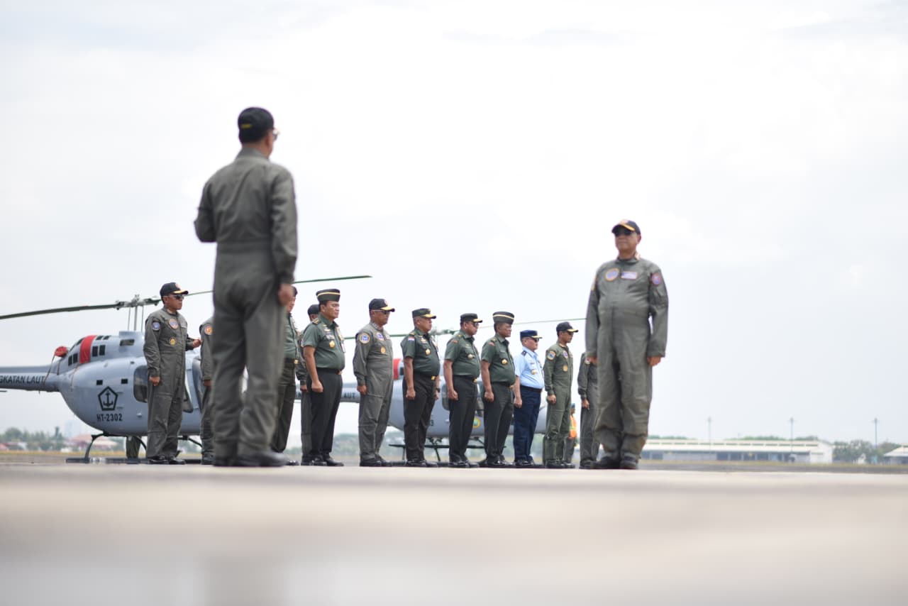 Setelah mendarat di Apron Baseops Pangkalan Udara Angkatan Laut (Lanudal) Juanda, Rektor Unhan Rl menjalani tradisi penyematan Brevet Kehormatan Penerbangan TNI Angkatan Laut oleh Danpuspenerbal.