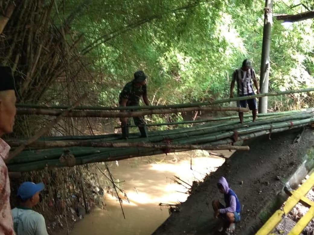 NGANJUK – Serda Joko Purnomo Babinsa Desa banaran dan 5 orang anggota Koramil 0810/12 Pace Bersama masyarakat melaksanakan kegiatan gotong royong Karya Bhakti membuat jembatan Darurat di Desa Banaran Kecamatan Pace Nganjuk, Sabtu. 16/02/2019.