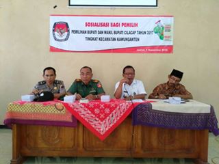 PB | Cilacap – Koramil 09/Kawunganten menghadiri Sosialisasi Pemilihan Bupati dan Wakil Bupati Cilacap Tahun 2017 bertempat di Pendopo Kecamatan Kampunglaut, Pendopo Kecamatan Bantarsari dan Ruang Rapat Wisma Praja Kecamatan Kawunganten,Jumat (02/09).
