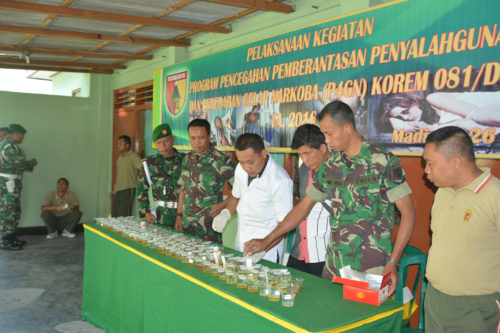 Tujuan dilaksanakan test urine adalah untuk mencegah keterpengaruhan dan keterlibatan anggota Korem 081/DSJ agar terbebas dan bersih dari pengaruh Narkoba sehingga dapat mendukung pelaksanaan tugas sehari-hari dan dapat melaksanakan tugas secara professional dan proporsional. Sedangkan sasarannya adalah seluruh Anggota Korem 081/DSJ baik Perwira, Bintara, Tamtama dan ASN. Dari hasil Test Urine tersebut para peserta tidak ada yang terindikasi memakai Narkoba/hasil negatif. (Penrem081/red)