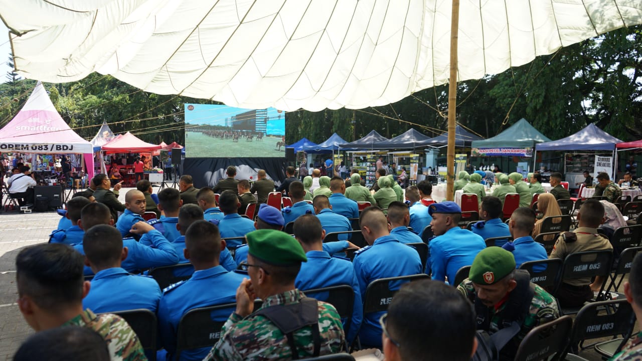 Kegiatan ini diikuti oleh seluruh personel Korem 083/Bdj beserta jajaran, Persit Kartika Chandra Kirana, serta masyarakat umum. Suasana kebersamaan tampak jelas ketika seluruh peserta menyaksikan secara langsung melalui layar besar jalannya acara puncak yang menampilkan parade pasukan tiga matra dan atraksi udara dari Monas Jakarta.