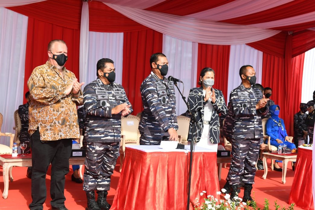 Dalam prosesi ini, Kasal juga menyaksikan penandatanganan berita acara oleh Aslog Kasal Laksda TNI Puguh Santoso, S.E., M.M., dan Direktur Utama PT. Lundin Industry Invest, Ibu Lizza Lundin didampingi Jon Lundin.