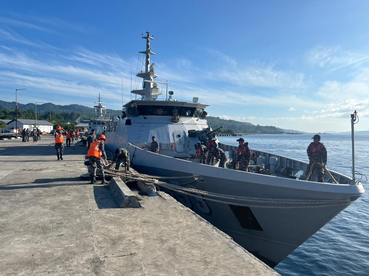 Ambon, Kodaeral IX (3/2/2026) – Dalam mendukung kelancaran operasi keamanan laut di wilayah timur Indonesia, Kapal Perang Republik Indonesia KRI Tatihu-853 sandar di Dermaga Ksatriaan Tawiri Kodaeral IX dalam misi operasi Perisai Sura-26 pada Selasa (3/2/2026).