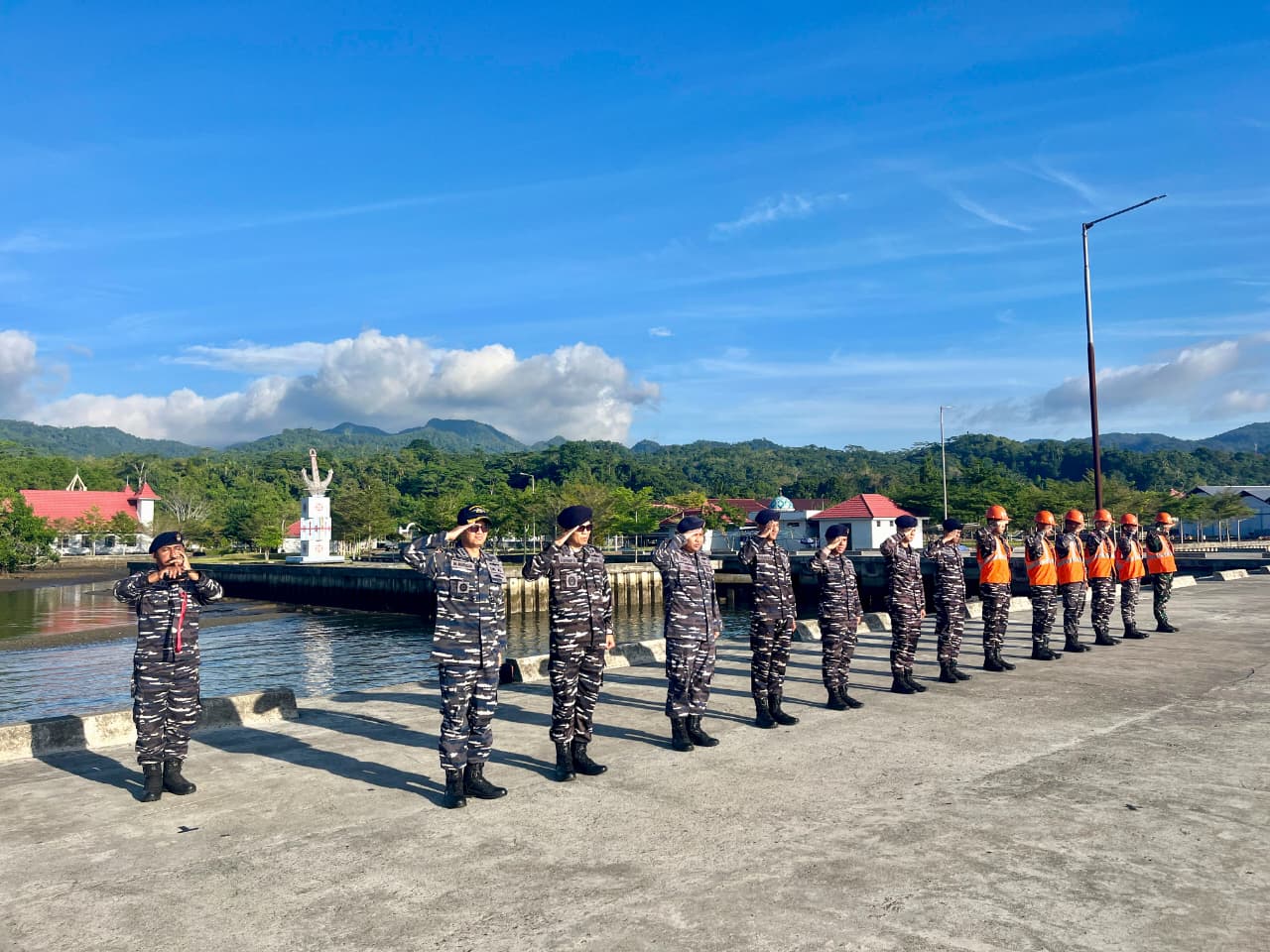 Kehadiran KRI Tatihu-853 disambut dengan upacara Merflug oleh jajaran pejabat Kodaeral IX guna memastikan dukungan logistik dan operasional berjalan optimal.