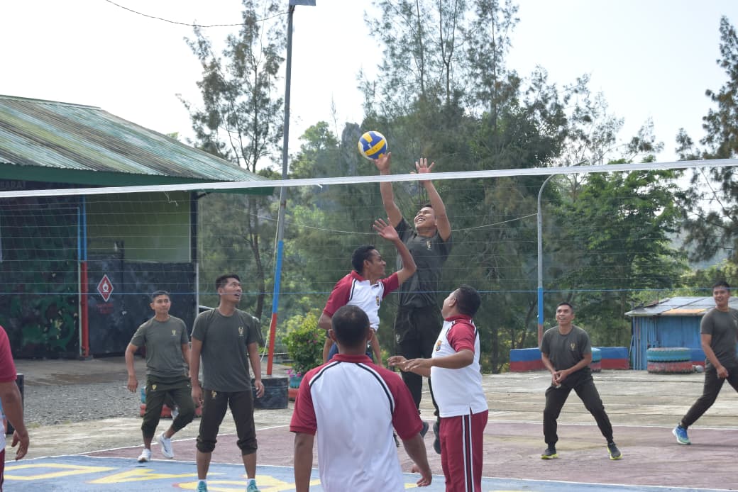 Kegiatan diawali dengan Senam Bersama yang melibatkan seluruh anggota Satgas Pamtas dan Polsek. Suasana semakin meriah saat kegiatan dilanjutkan dengan Pertandingan Bola Voli yang berlangsung cukup sengit.