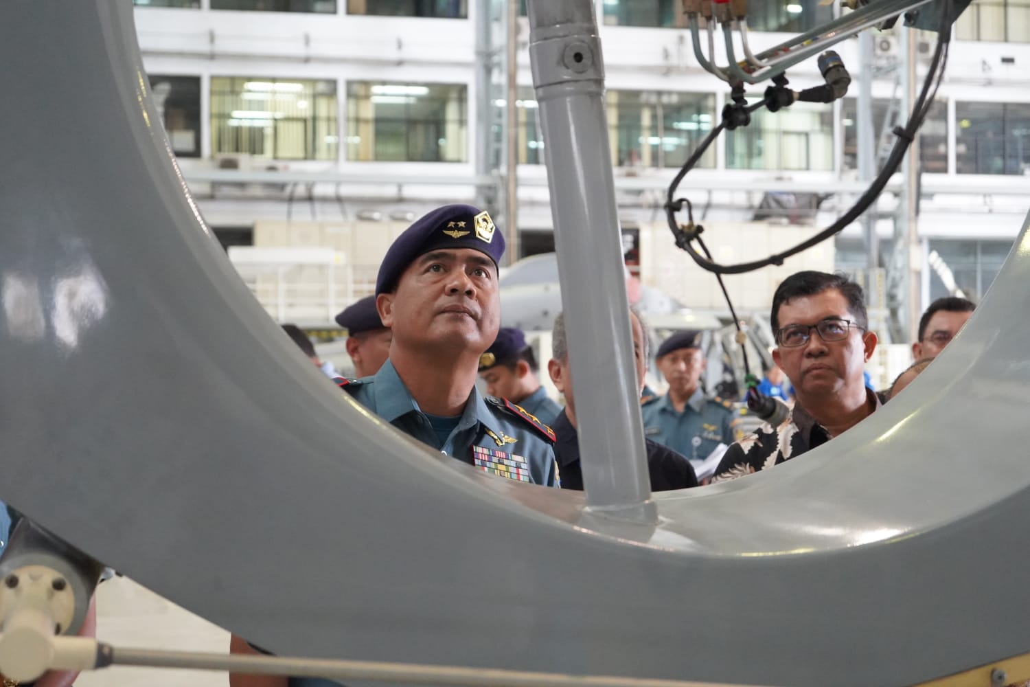 Bandung, (27/11/2025) – Komandan Pusat Penerbangan TNl Angkatan Laut (Danpuspenerbal), Laksda TNl Bayu Alisyahbana melaksanakan kunjungan kerja ke PT. Dirgantara Indonesia (PT.Dl) untuk meninjau pekerjaan perbaikan Heli Panther dan Progress CN 235 Pesanan TNI AL pada Kamis (27/11/2025).