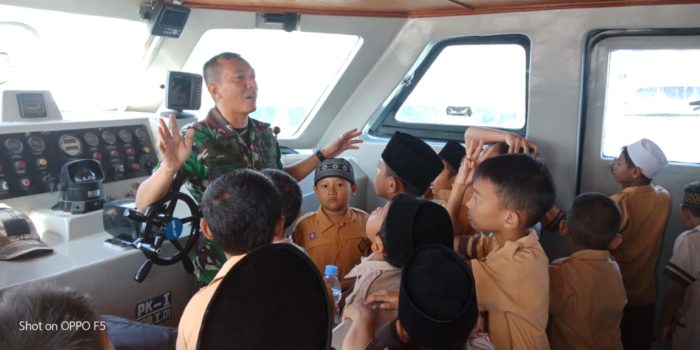 Pada kesempatan tersebut murid-murid SD At Taqwa ini dikenalkan pada kehidupan sehari-hari Prajurit di darat maupun dikapal dan mengenalkan peralatan serta sarana prasarana pendukung operasional yang ada di kesatuan Mako Lanal Tegal. (dispen lantamal V|red|noven)