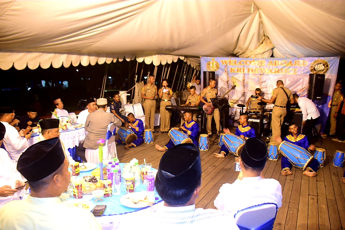 Acara dilanjutkan dengan Buka Puasa Bersama dan Ramah Tamah yang diselingi suguhan atraksi Tari Rampak Gendang dari Jawa Barat dan Tari Saman dari Aceh yang diiringi oleh Gita Samudera Band oleh Taruna dan Taruni AAL yang sedang menjalani Latihan Praktek (Lattek) Navigasi Astronomi dengan KRI Dewaruci ini.