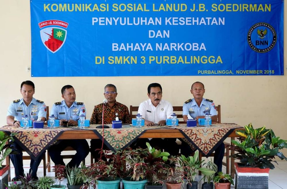 Kadisops Lanud J.B. Soedirman Mayor Tek Naharudin, A.Md., dalam sambutannya pada kegiatan tersebut mengatakan, kegiatan Komunikasi Sosial ini merupakan salah satu program Pembinaan Potensi Dirgantara Lanud J.B. Soedirman. Penyuluhan Kesehatan dan Bahaya Narkoba ini merupakan suatu tema yang penting untuk disosialisasikan kepada para siswa, “ Bahaya Narkoba merupakan musuh terbesar bangsa kita dan targetnya dari anak-anak sampai dengan orang tua, kita berharap dengan dilaksanakannya kegiatan ini akan menambah wawasan untuk siswa-siswi akan bahaya Narkoba dan terbiasa dengan pola hidup yang sehat guna menyongsong masa depan yang cemerlang,” jelasnya.