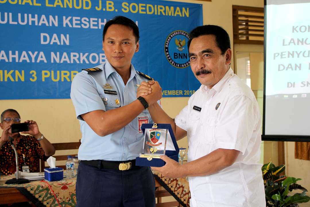 Purbalingga – Lanud J.B. Soedirman bekerja sama dengan BNN Kabupaten Purbalingga, menggelar (Komsos) Komunikasi Sosial tentang Penyuluhan Kesehatan dan Bahaya Narkoba kepada ratusan siswa Sekolah Menengah Kejuruan Negeri 3 (SMKN 3) Kab. Purbalingga yang berlangsung di Aula SMKN 3 Purbalingga, Rabu (21/11). Hadir pada acara tersebut Kadisops Lanud J.B. Soedirman Mayor Tek Naharudin, A.Md., Kepala BNN Kab. Purbalingga Istantiyono, S.Sos., Kepala Sekolah SMKN 3 Kab. Purbalingga Juwani, M.Pd., Kakes Lanud J.B. Soedirman Kapten Kes Edi Soeprapto dan Kaurdukkes Lanud JB Soedirman dr. Yohan Parulian Sinaga serta para siswa SMKN 3 Purbalingga.